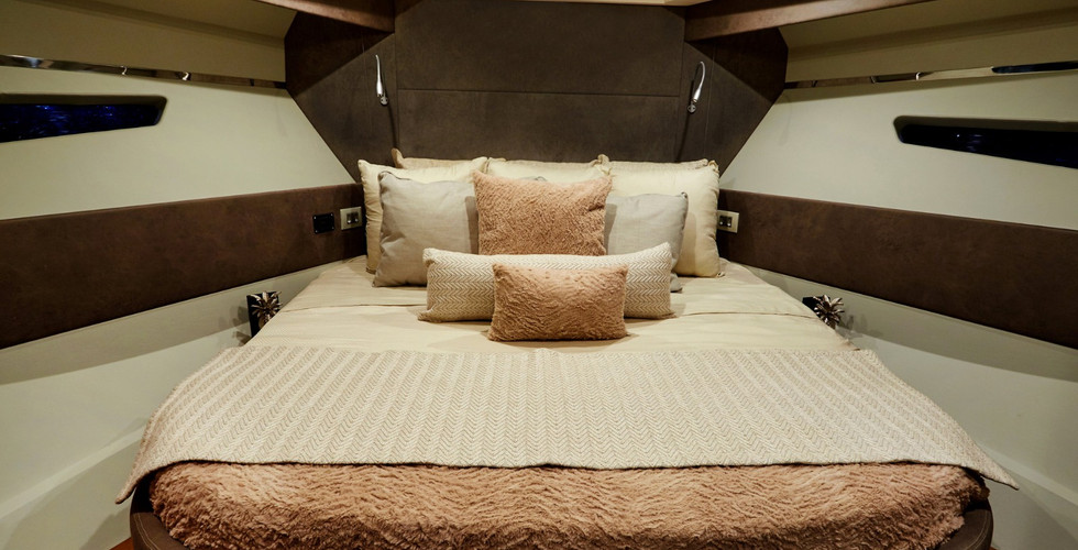 Com soluções de tecnologia e inovações que chamam a atenção à primeira vista, a New Schaefer 375 possui duas varandas laterais retráteis que ampliam o espaço na praça de popa totalmente integrada ao cockpit. Seu interior com 1,90 m de pé direito traz muito espaço para pernoitar com conforto. São duas camas de casal, uma à proa e outra à meia-nau, mesa, cozinha e um grande banheiro. Seu hardtop proporciona uma abertura de quase 1,50 m em apenas alguns segundos. Uma passagem interna permite acesso à proa da embarcação com segurança mesmo quando o barco está navegando. A New Schaefer 375 também pode contar com gerador e ar condicionado para tornar a estadia ainda mais confortável.